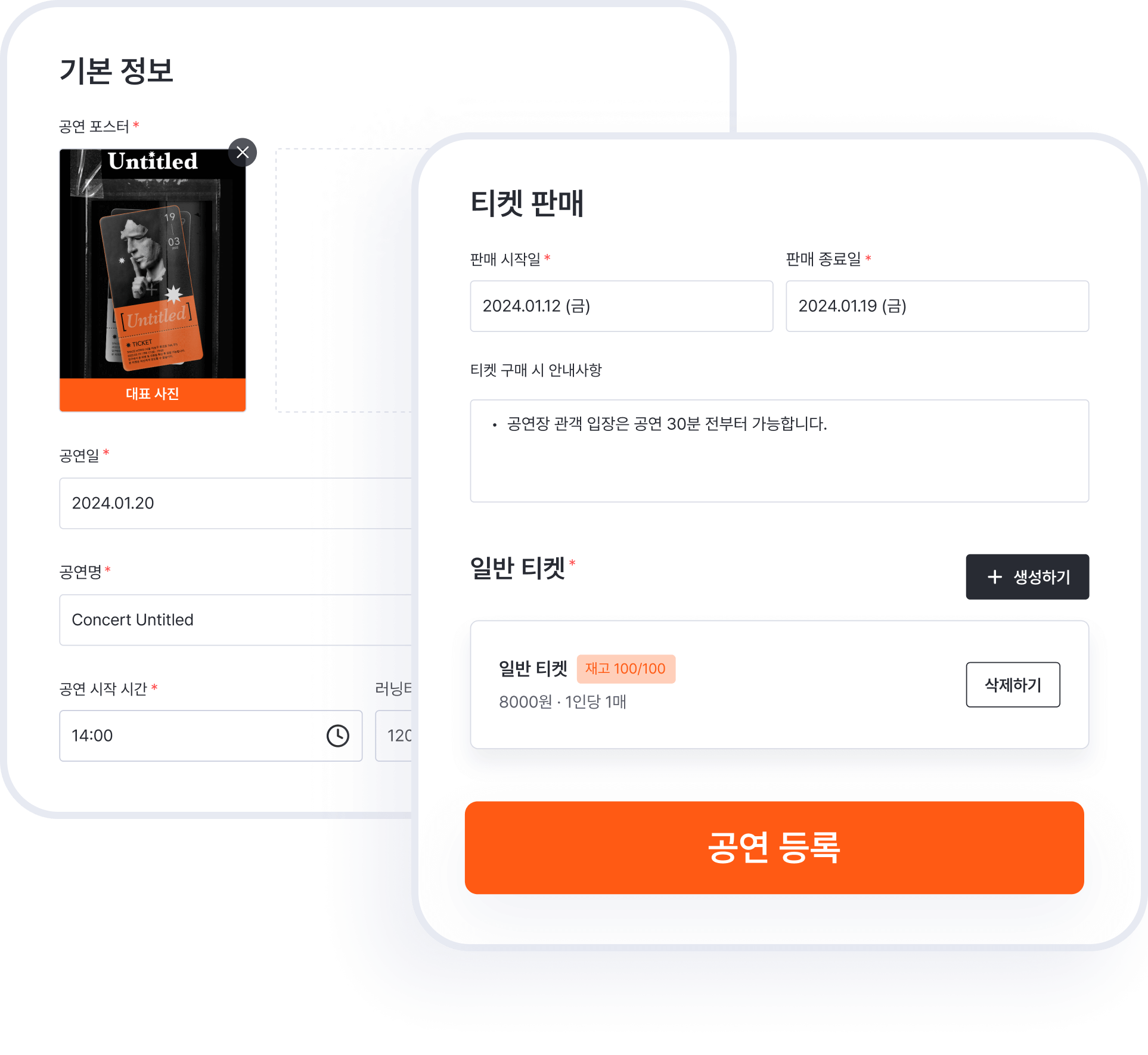 예매에 필요한 정보를 입력하고 판매할 티켓을 생성하면 끝!