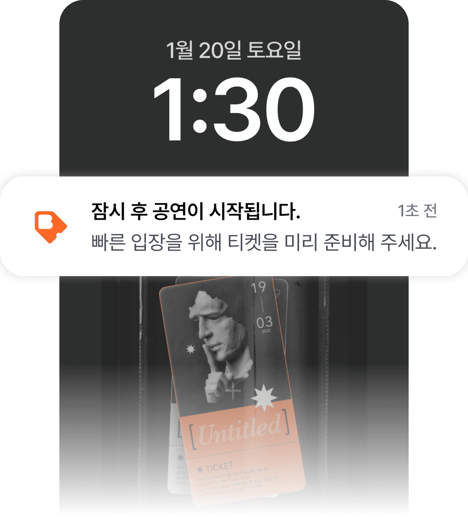공연 30분 전 입장 알림 발송으로 티켓을 미리 준비하고 빠르게 입장해요