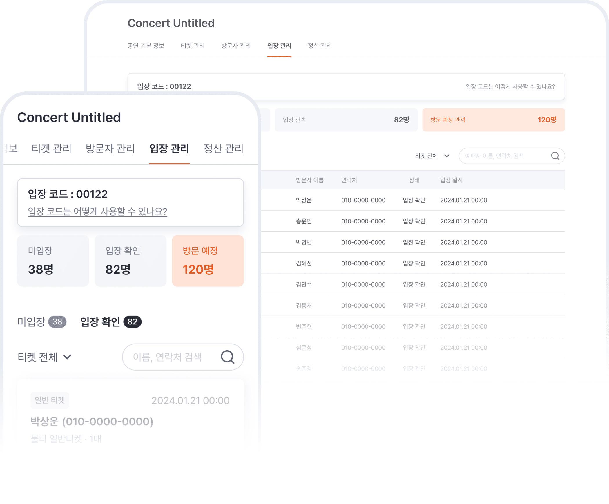 모바일 뷰로 PC를 사용하기 어려운 공연장에서도 쉽게 입장을 확인해요