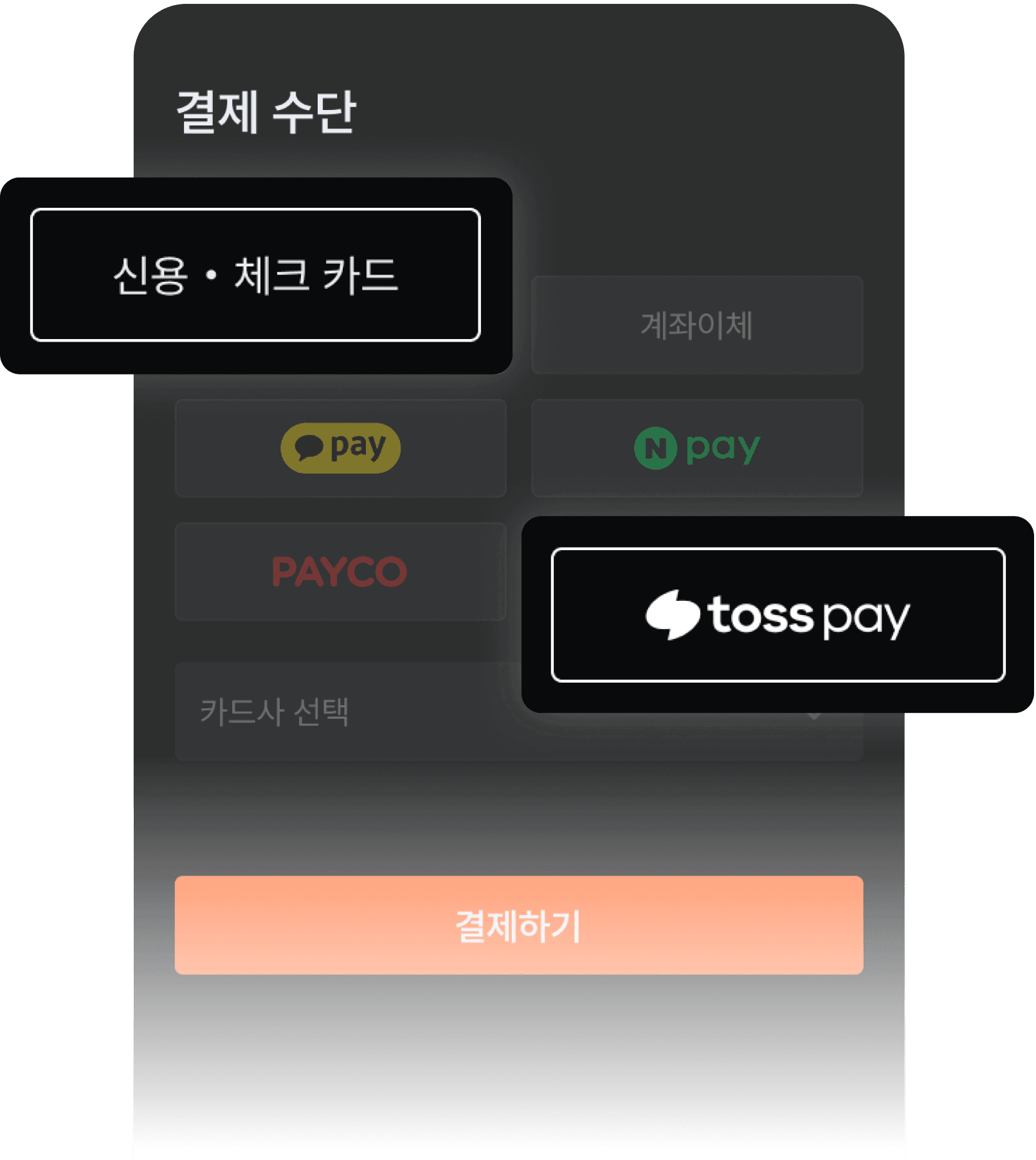카드, 계좌이체, 간편결제 등 원하는 결제 수단으로 티켓을 구매해요