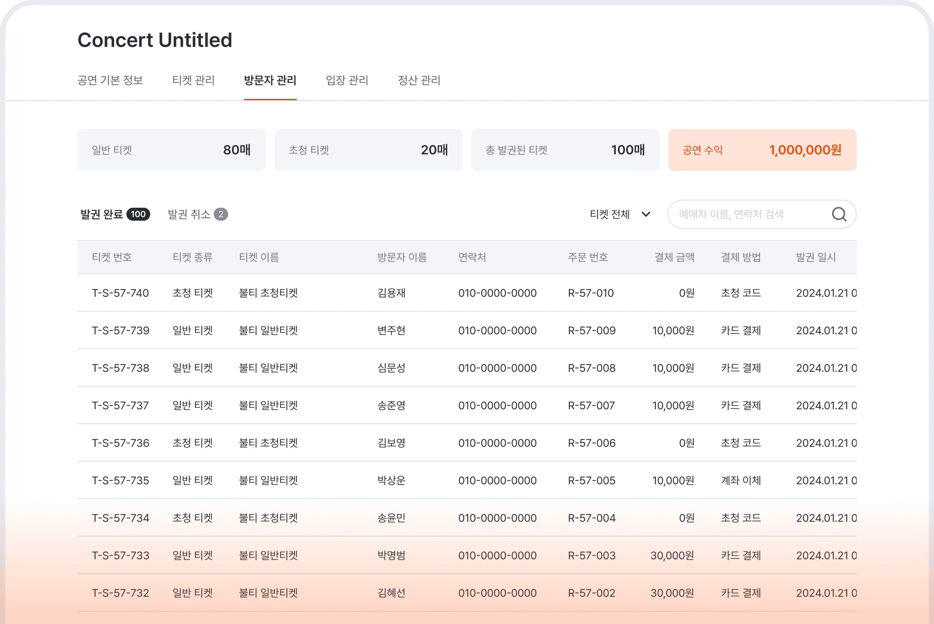 예매에 필요한 정보를 입력하고 판매할 티켓을 생성하면 끝!